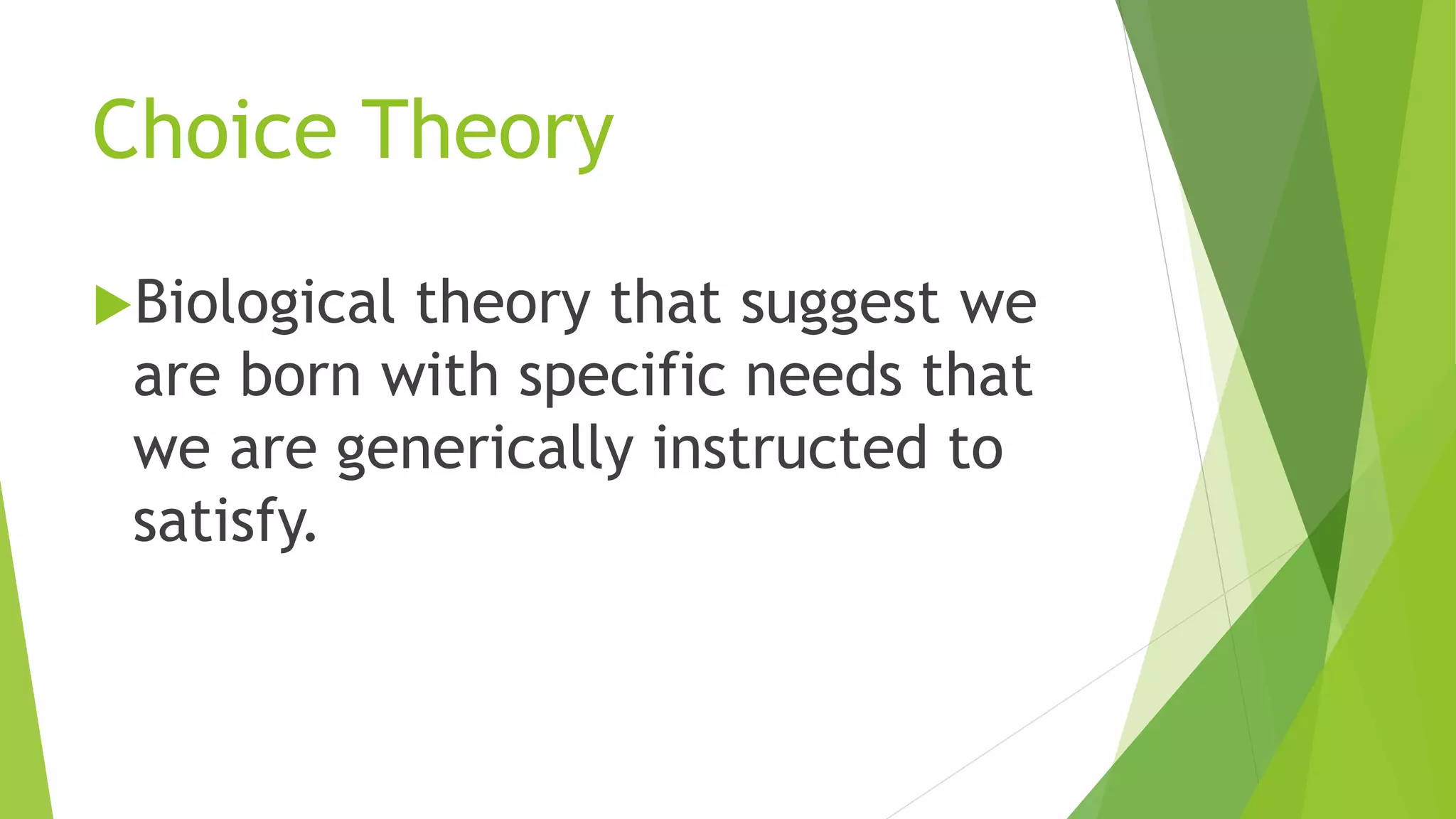 1) Choice Theory proposes 4 basic psychological needs that motivate behavior: belonging, power/competence, freedom, and fun. Creating a sense of community and student choice can satisfy these needs.
