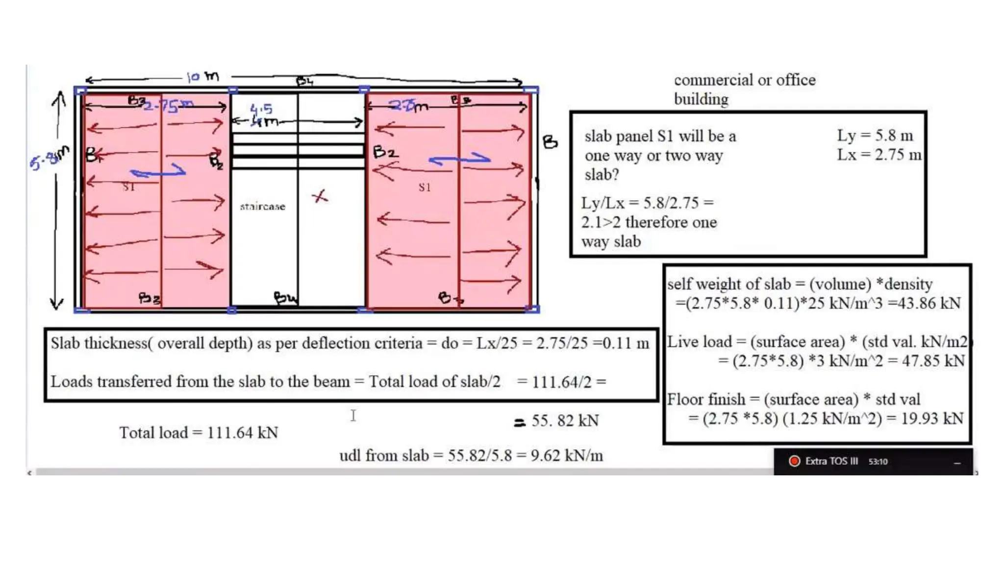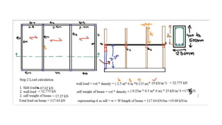 The document provides specifications for a reinforced concrete structure including an instantaneous modulus of elasticity, bar and stirrup diameters, wall and column dimensions, permissible shear stress, concrete grade, and reinforcement steel grade. Dimensions include wall thicknesses of 115mm and square columns of 300mm.