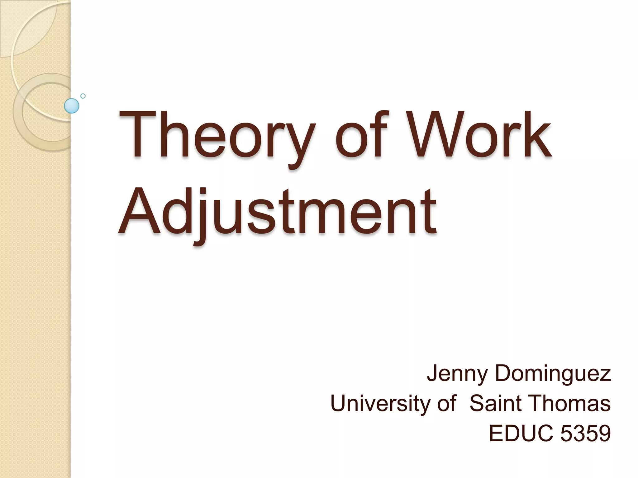 Theory of Work Adjustment Jenny Dominguez University of Saint Thomas EDUC 5359