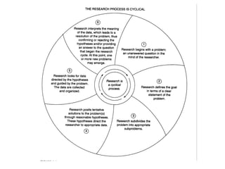 The document discusses the nature and role of theory in scientific research, defining key concepts like hypotheses, theories, and laws. It explains that scientific theories are well-established explanations for natural phenomena built from testable observations and hypotheses, playing important roles in scientific research such as being explanatory, predictive, and guiding further study. The document also contrasts inductive research, which develops theories from empirical data, with deductive research, which tests theory-inspired hypotheses.
