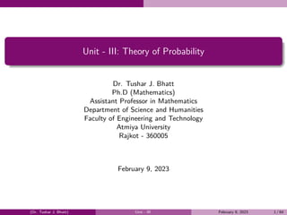 The document provides a comprehensive overview of the theory of probability, including definitions and examples of key concepts such as events, probability, conditional probability, Bayes' theorem, and random variables. It discusses different types of events, the classical definition of probability, and illustrates various examples to demonstrate the application of these principles. Additionally, the document explores the fundamental rules of probability, including the addition and multiplication rules.