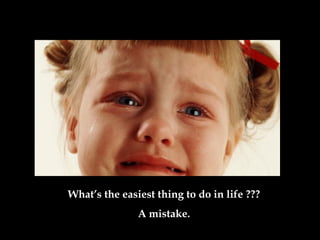 This document discusses many philosophical topics related to life's greatest things and challenges. It asserts that love is the most beautiful of all and that life without love loses its meaning. Key ideas presented include that the greatest failure is lack of faith, the best teachers are kids, and the absolute prime need is contact with other human beings. Overall, the document emphasizes the central importance of love in giving life meaning.