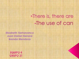 The document discusses the proper uses of "There is" and "There are" in English. "There is" is used with singular countable nouns and uncountable nouns, while "There are" is used with plural nouns. It provides examples of these structures being used affirmatively, negatively, and interrogatively. Contractions can be made with "There is" but not with "There are."