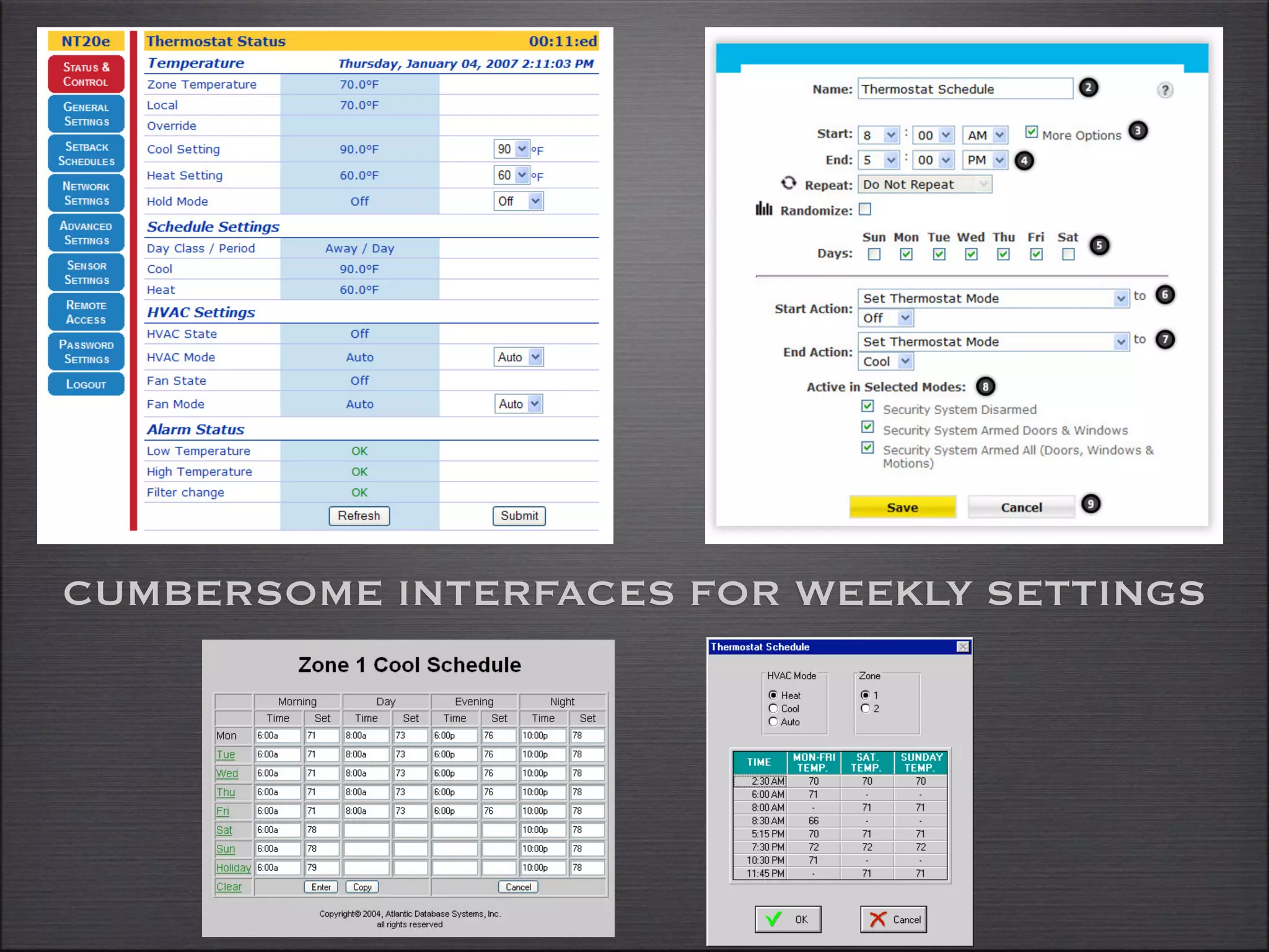 The document discusses interfaces for weekly settings and microclimates. It repeats that an interface has been developed for microclimates five times. The interface may help manage settings on a weekly basis and for small localized weather patterns or environments.