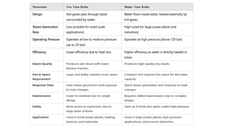 Fire-Tube Boiler: Hot gases pass through tubes surrounded by water (e.g., Lancashire, Cochran, Locomotive boilers).
