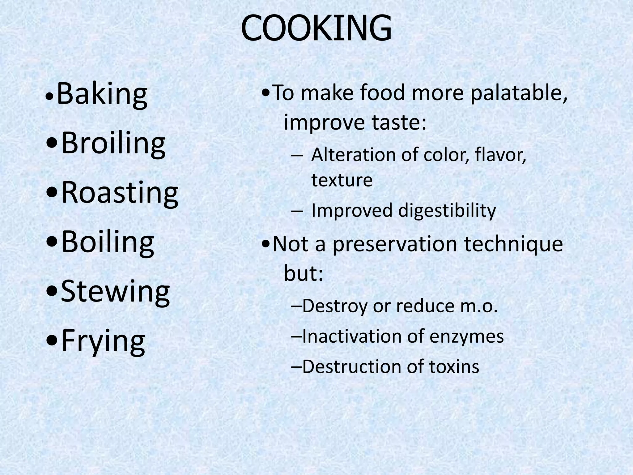Thermal food processing technologies include various cooking and heat treatment methods like baking, boiling, frying, and more. These methods make food safer, more palatable, and in some cases help preserve it. Common thermal processing techniques discussed include blanching, pasteurization, sterilization, evaporation/concentration, extrusion, dehydration, baking/roasting, and frying. Newer methods like aseptic processing are also covered, which sterilize food outside the package before aseptically filling sterile containers. The document provides details on the principles, equipment used, advantages, and limitations of various thermal food processing technologies.