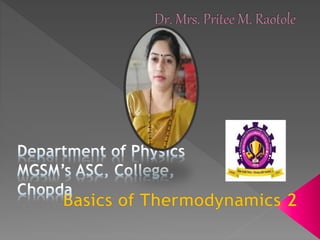 The document explains thermodynamic temperature, emphasizing its definition as an absolute measure and detailing the importance of absolute zero. It elaborates on different thermodynamic processes including isothermal, adiabatic, isochoric, and isobaric processes, highlighting their characteristics and the first law of thermodynamics as it applies to each. Various calculations related to work done, heat transfer, and changes in state during these processes are also discussed.