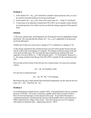 This document contains a homework assignment for a thermodynamics class consisting of 6 problems. The problems cover topics like heat transfer calculations, the first law of thermodynamics, and using thermodynamic property tables. The student is asked to show their work symbolically, report numerical values to appropriate significant figures, and provide brief yet complete answers in sentences for conceptual questions.