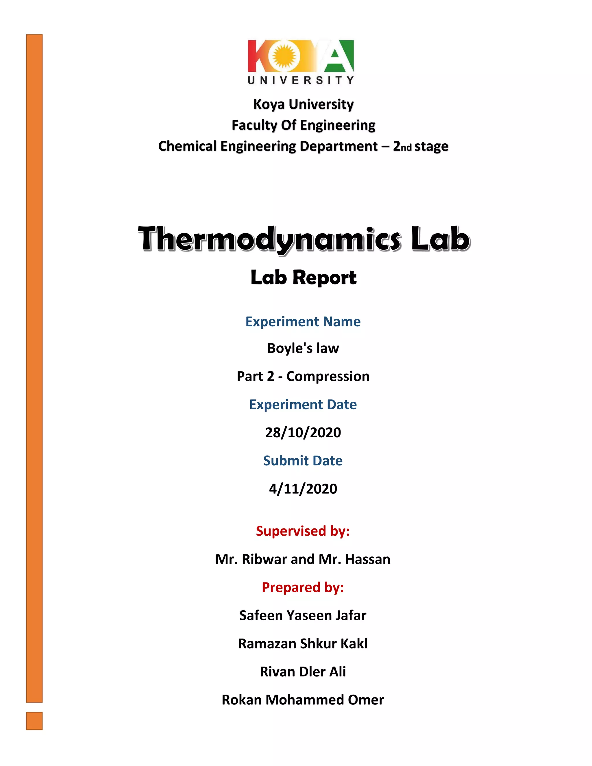 This lab report summarizes an experiment to verify Boyle's law regarding the inverse relationship between the pressure and volume of a gas at constant temperature. The experiment involved compressing a gas in a vessel and measuring the pressure and volume at various points. The results showed that as pressure increased, volume decreased, maintaining a constant product of pressure and volume. Key differences between the compression and expansion parts of the experiment were discussed.