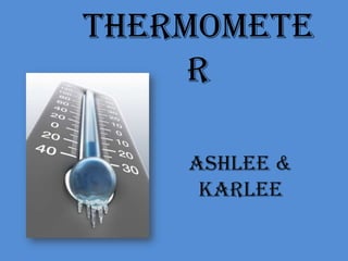 Thermometers have been used since the late 16th century to measure temperature. Galileo Galilei invented the first water thermometer in 1593. Daniel Gabriel Fahrenheit later invented the mercury thermometer in 1714, which is the design still used today. A thermometer works by having mercury, water, or alcohol expand or contract based on temperature changes, moving along a numerical scale to indicate the reading. Thermometers are commonly used to measure air and atmospheric temperatures.