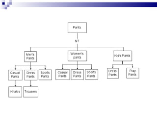The document discusses various types of controlled vocabularies and metadata that can be used to organize information, including synonym rings, authority files, classification schemes, thesauri, and faceted classification. Controlled vocabularies and metadata help improve search, navigation, and information retrieval by establishing relationships between terms and standardizing language. Faceted classification in particular allows information to be organized from multiple perspectives using different facets or attributes.