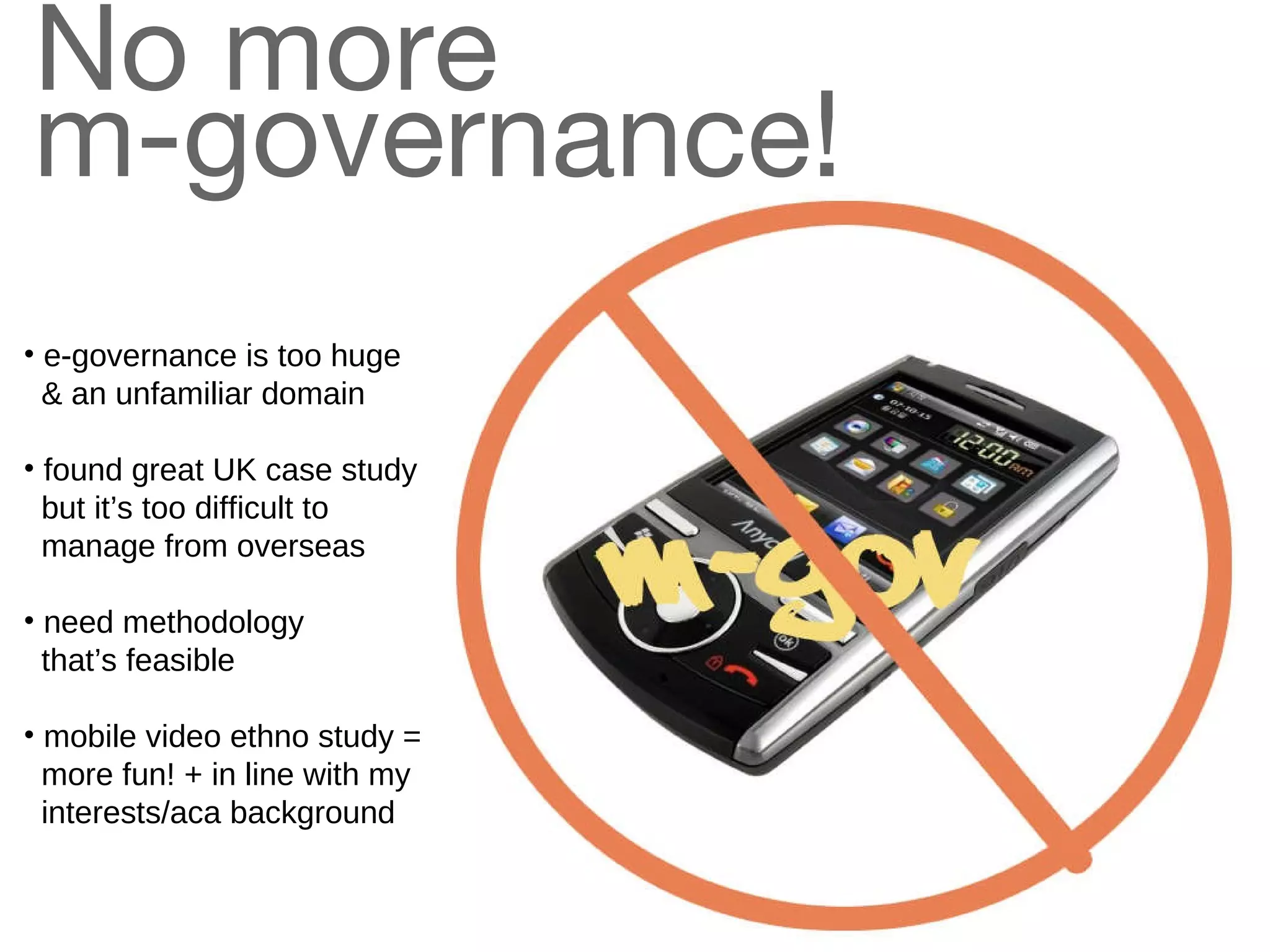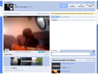 The document discusses conducting research on streaming mobile video content that has civic value. It proposes analyzing content from sites like Ustream and Qik to categorize video types and measure viewer discussion. Interviews would explore producers' goals and contexts. While the field is emerging, the research could provide insights into how streaming mobile video impacts civic participation and the blurring line between public and private spheres. However, challenges include the rapidly changing technology and capturing cultural context from international content.