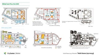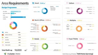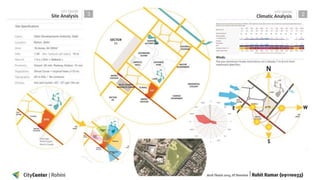 This document details a B.Arch thesis project focused on developing a mixed-use city center in Rohini, Delhi, intended to facilitate commercial, cultural, and social activities. The project addresses architectural challenges related to the integration of commerce and culture, aiming to create a vibrant public space that reflects the needs of a diverse demographic. Furthermore, it analyzes site context, accessibility, and design considerations to ensure functionality and aesthetic appeal within the urban environment.