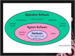 This document discusses the importance of software in education. It defines different types of software like operating systems and instructional software. Microsoft Windows is described as the operating system that acts as an interface between the user and computer. Instructional software can be accessed online or purchased and should be carefully evaluated by teachers based on pedagogical principles to ensure they are accurate, clear, and effective for meeting learning objectives.