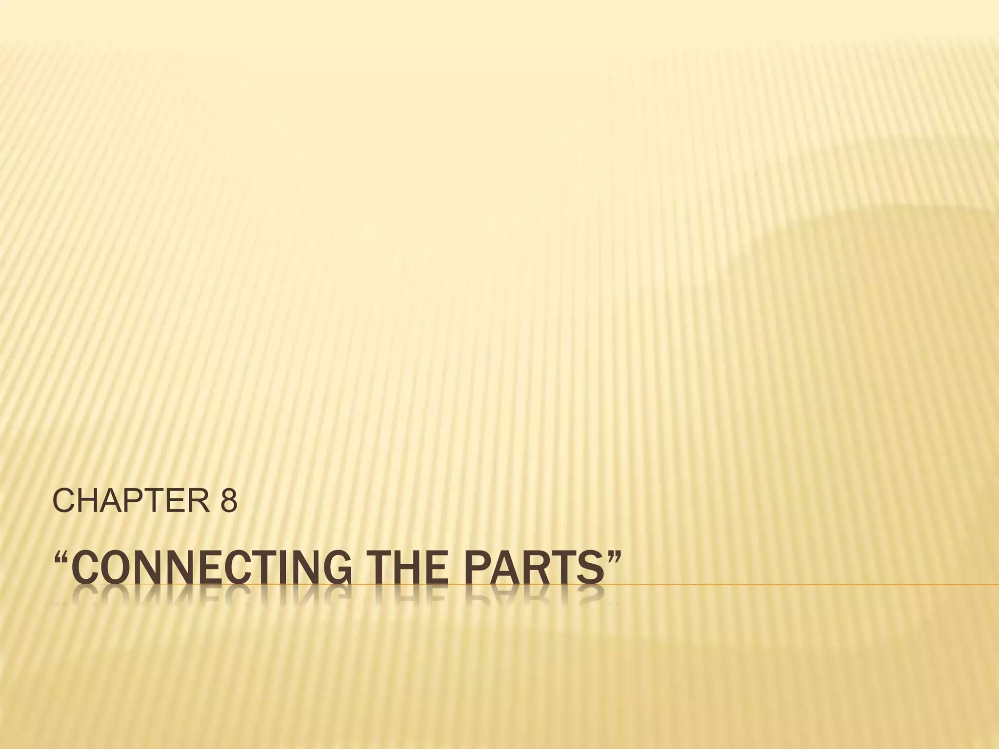 Bill struggled to connect his ideas from one sentence to the next, making his writing difficult to follow. Chapter 8 explains that writers must connect not only their ideas to other sources, but also connect their own ideas together within their writing. The chapter provides four strategies for helping writers make these connections: using transition terms, adding pointing words, developing key terms and phrases, and repeating ideas with variation. Any of these strategies require carefully assessing how each new sentence relates to the ones before and after it.