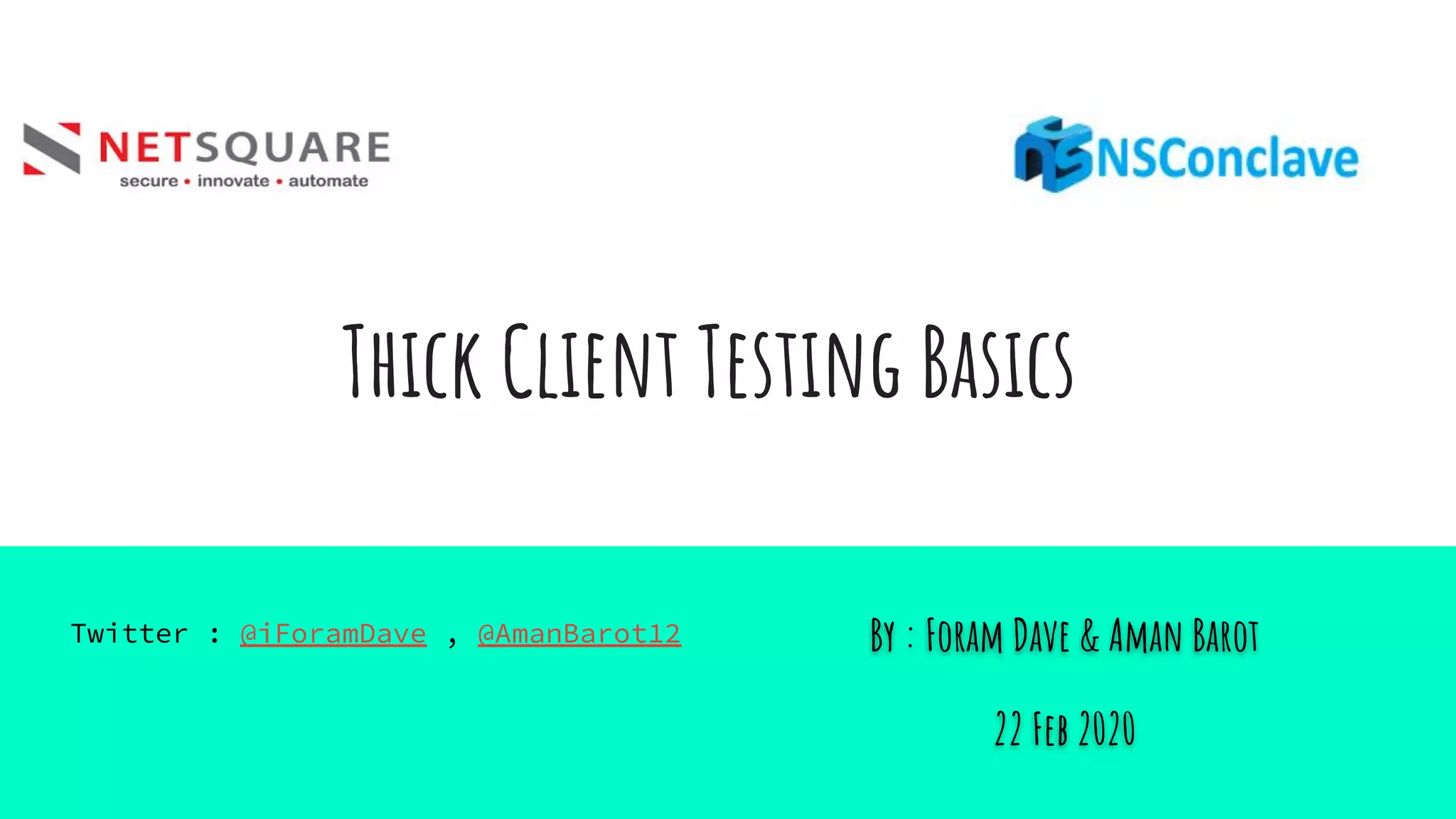 The document provides an introduction to thick client applications, distinguishing them from thin client and web applications, and detailing their architecture. It covers key vulnerabilities, testing methodologies, and tools for testing thick clients, including dynamic, local storage, and memory testing. Additional insights include the importance of monitoring sensitive data in local storage and registry, and techniques for reverse engineering thick client applications.