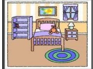 The document lists various furniture and objects commonly found in a bedroom such as a bed, bookshelf, chair, clock, curtain, desk and chair, floormat, mirror, picture, table lamp, and wardrobe. It emphasizes keeping the bedroom clean and tidy, and concludes the lesson by saying goodbye until next time.