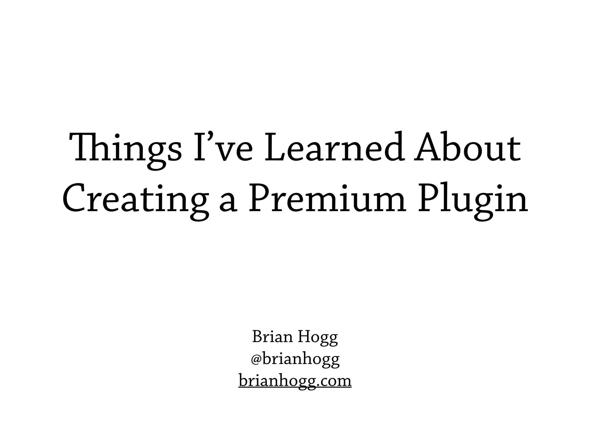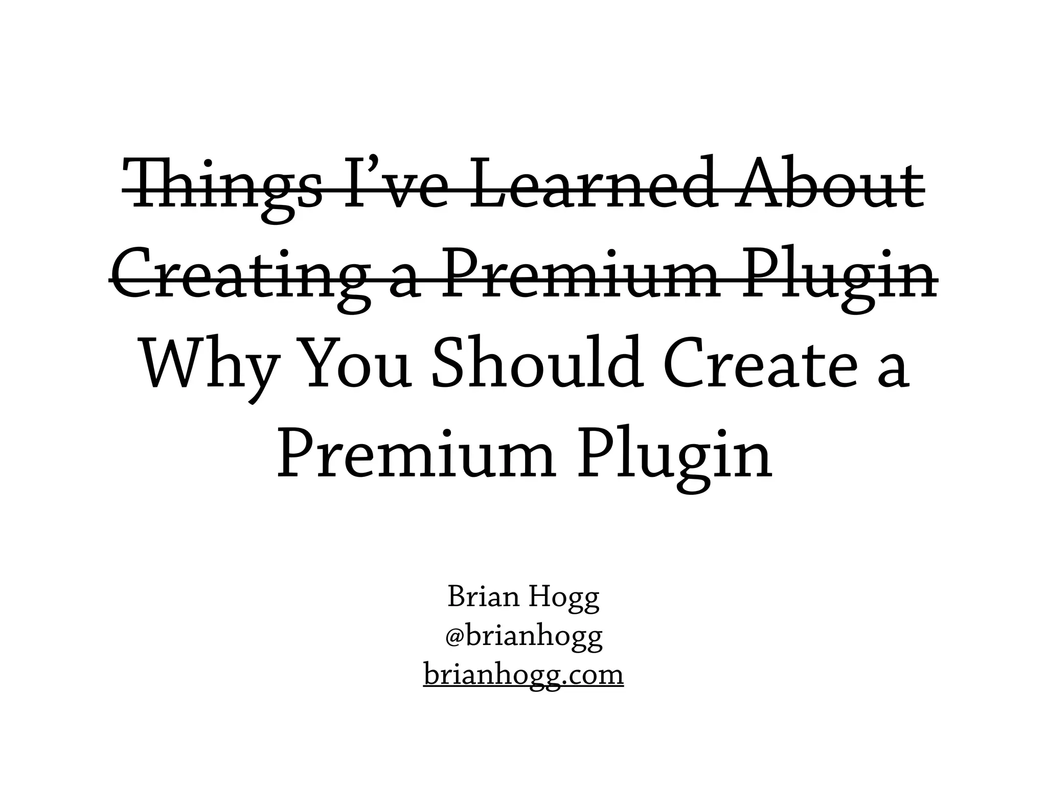 This document provides tips and lessons learned from creating premium WordPress plugins. It discusses why one should create premium plugins, important factors to consider like product, price, promotion, distribution and support. It notes that while passive income is appealing, premium plugins require ongoing work. The document offers specific dos and don'ts based on experience, like taking support time into account, having clear terms and conditions, reaching out to customers and not waiting to get started. Resources for further information are also provided.