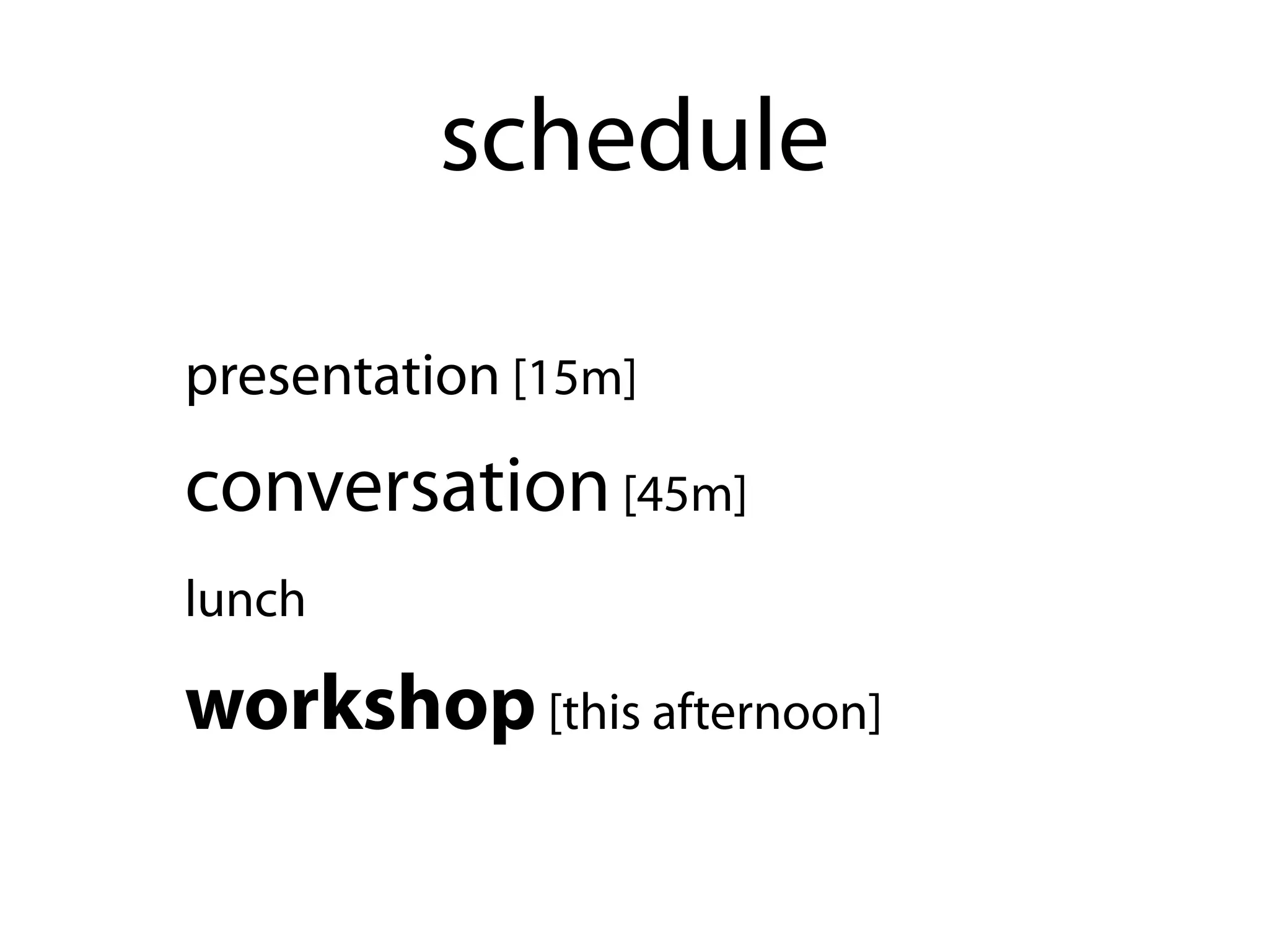 The document outlines an agenda for a presentation and workshop. It includes a 15 minute presentation, 45 minute conversation, and lunch. In the afternoon there will be a workshop. The document also shares 13 things the author has learned while building things, such as keeping experiences simple, getting rid of non-essential elements, focusing on utility over being first, building prototypes, and more. It concludes by recommending a book to read and emphasizing the importance of having fun.