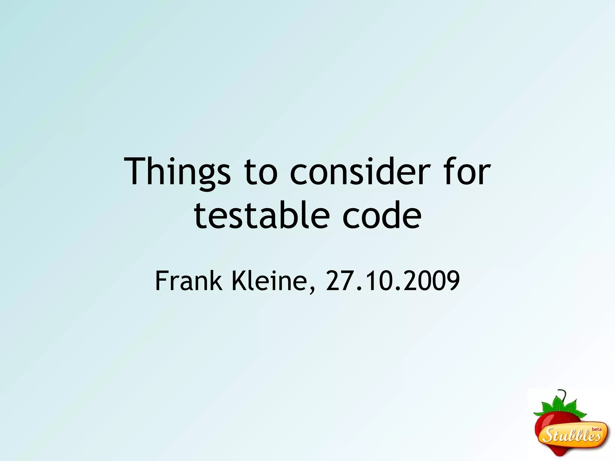 The document discusses best practices for writing testable PHP code, emphasizing the importance of object construction and dependency injection. It critiques the use of the 'new' keyword in service classes and explains anti-patterns that make code hard to test, particularly highlighting the Law of Demeter and issues with global state. The speaker advocates for avoiding singletons, promoting dependency injection frameworks for better maintainability and testability.