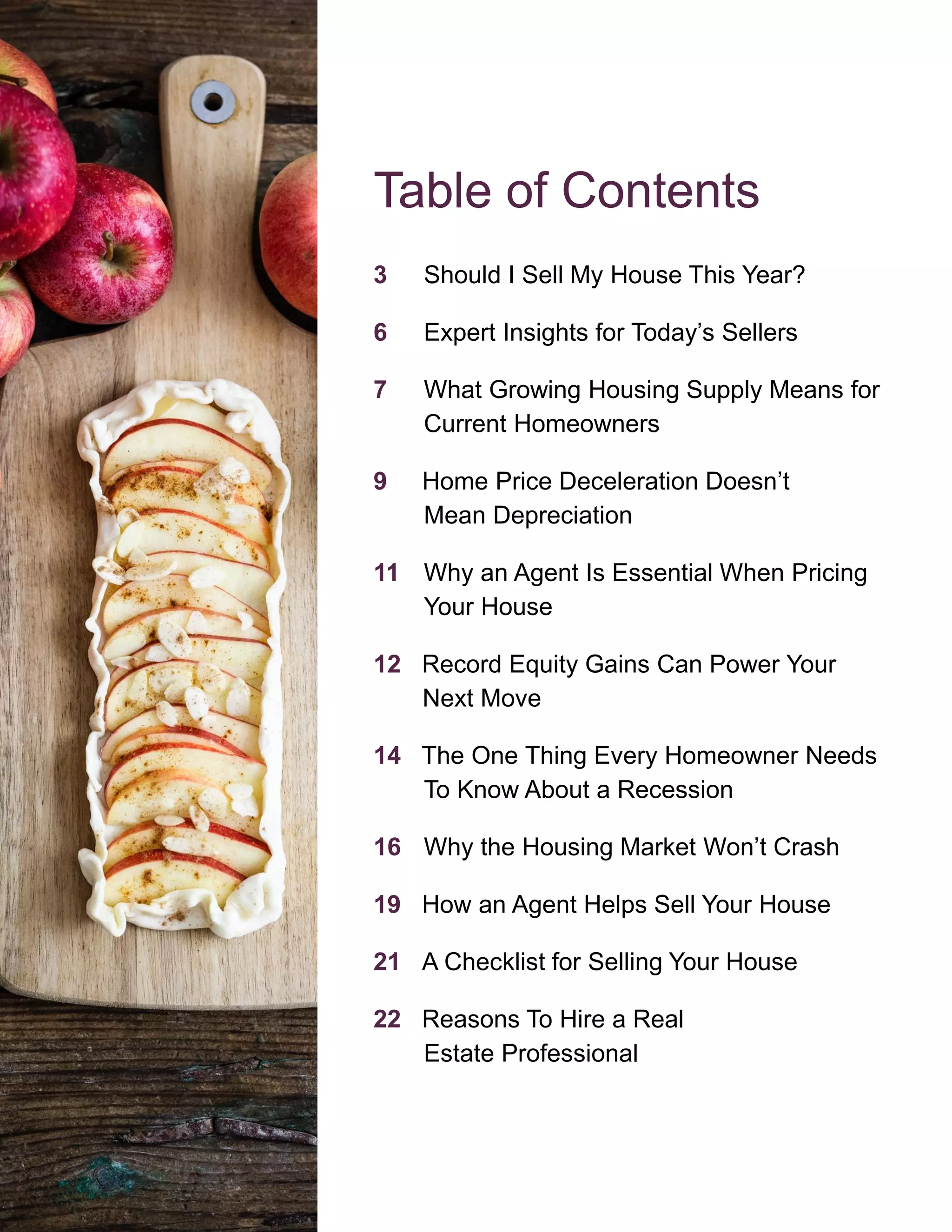 This document provides information for homeowners considering selling their home in fall 2022. It discusses the current housing market conditions, including a growing housing supply that provides both opportunities and benefits for sellers. While inventory is up, housing supply is still low overall. The document also addresses common questions about the potential impact of higher interest rates and a possible recession on home prices. It argues that historically, recessions do not necessarily mean falling home prices. Real estate professionals are positioned to help sellers price their homes correctly to sell in the current market.