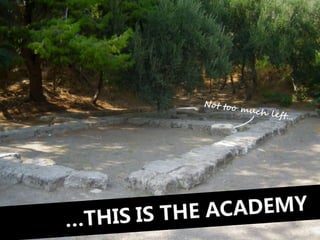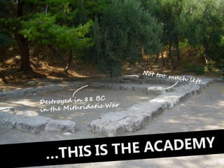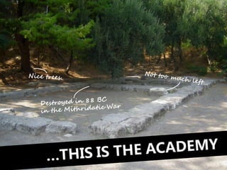 #98 …This is the Academy. Unfortunately, this is just about all that remains of Plato’s grand Academy. As you can see…