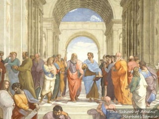 #15 We can find the three primary shapers of modern thinking in a painting by Raphael Sanzio called “The School of Athens”…