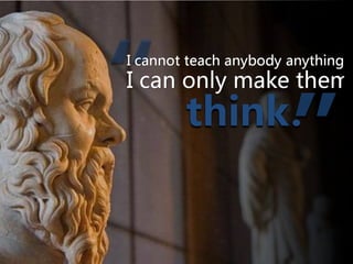 #67 He said, “I cannot teach anybody anything. I can only make them think.” Although people considered him the wisest man to be alive, Socrates believed he actually knew nothing at all, and therefore could not teach anyone anything. Thus, instead of teaching his students lessons, he developed a different technique unique from any other “teacher” previous to his time…