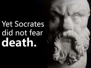 #72 He simply did not fear death. According to Xenophon, Socrates purposefully mocked the rulers in his suggestion of his punishment because he believed he was better off dead. He believed no philosopher or great thinker should fear death.