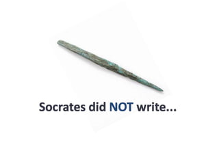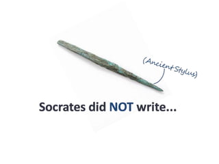 #75 (And by the way, if you were wondering, this is an ancient Greek “pen,” called a stylus, which is where we get the term for phone styluses today. Ancient Greeks used such a device to write into wax tablets or other similar writing devices.) Yet although Socrates did not write his ideas down, many of his students remembered and practiced what he taught, and…