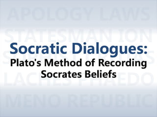 #83 Plato recorded Socrates’ ideas in the form of dialogues. He wasn’t the only one to write these Socratic Dialogues (Xenophon and Alexamenus did as well), but he was the most notable, both for his accuracy, depth, and number of writings. Some of these dialogues include such familiar works as Plato’s Republic¸ Apology, Meno, Sophist, Statesman, and Laws. Because Plato wrote down Socrates ideas, it is difficult to determine which are actually Socrates’ and which are uniquely Plato’s. It’s unclear whether Plato was really recording Socrates’ ideas or just using him as a character to give credibility to his own. However, given the history provided by other contemporaries, it does appear that Plato stays fairly true to Socrates’ original beliefs. Plato wrote over 35 of these dialogues, and scholars have determined three classes within Plato’s Socratic dialogues—early, middle, and later—and the later dialogues have a shift in style that enables us to differentiate between Plato’s teachings and those of his master. These later dialogues have Socrates’ performing more direct teaching rather than asking questions, and this has led scholars to conclude that Plato was using these unique dialogues to record his own beliefs rather than those of his teacher. In fact, Plato wrote so much about such a wide variety of topics that the modern philosopher Alfred North Whitehead has said that all philosophy since Plato has just been commentary on his works.