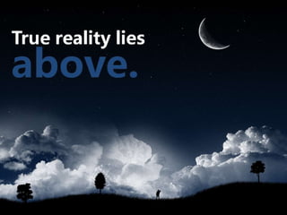 #85 The true reality lies above the world we observe around us. True reality is spiritual, abstract, and distant. Plato believed the truth is absolute and immaterial and exists in its own immaterial world beyond this material world. The forms of perfect things and truth exist in this immaterial world. He believed this world was not just an idea, but an actual state of existence above and beyond our own and was eternal and unchangeable.