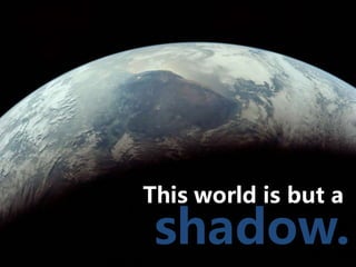#86 This world is but a shadow. The world we observe around us is but a shadow of the true forms that lie above in the eternal, perfect platonic world. Plato denied the reality of the material world. Everything we observe is always changing, inconsistent, and untrue. Thus, it is but a shadow of perfect, unchanging truth.