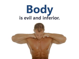 #88 The soul is what it is good and eternal. It is an eternal form, and because it is a form, it is true and good. Only the soul can perceive the perfect forms, for it is perfect itself. However as mentioned before, the body hinders the soul from finding truth. The senses distract it from true reality. The body’s appetite causes the owner of the soul to crave evil. But after the body dies and disintegrates, the eternal soul is free to move into the realm of pure forms and lives forever. This theory of forms introduced the idea of dualism, which is prominent in Western thinking and religion today, and we can especially see it in Christianity. Some Christians have come to interpret the flesh literally as the flesh of our bodies, and they condemn it as evil, rather than interpreting it as our old nature. Christians have an idea of heaven as a separate, non-physical reality of perfect forms to which our soul migrates after departing from this evil body. But that is simply Platonic thought. The Bible clearly says that our bodies will be resurrected. This is the reality God created for us and meant for us to exist in.