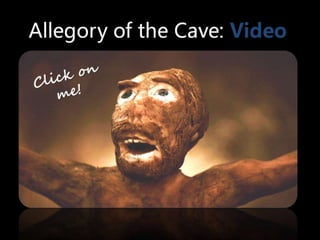 #93 …This video illustrates that idea a little better. Those who take the world of the senses to be real are living in a den of evil and ignorance. To climb out of this cave and see the light and understand true reality is extremely difficult, and those who are able to do it are unable to explain this true reality to those still in the cave. They are scorned.The video is a bit cheesy, but bear with it. It illustrates the point, and I think it is pretty humorous.(Click on video to pull up link to youtube video content.)