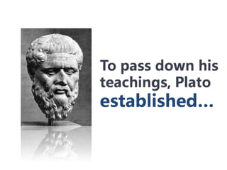 #95 To pass down all this ideas Plato had and taught, Plato established the…