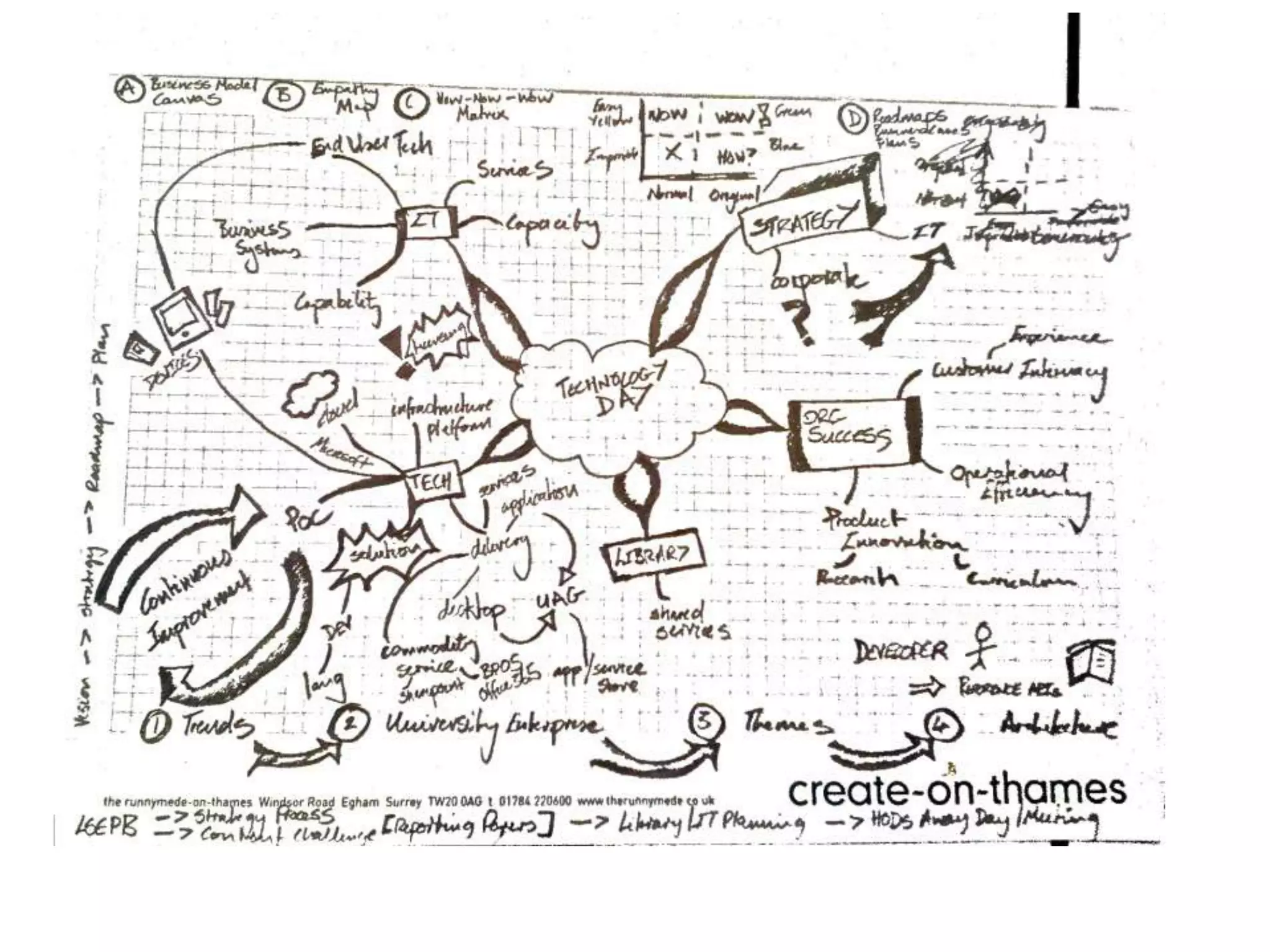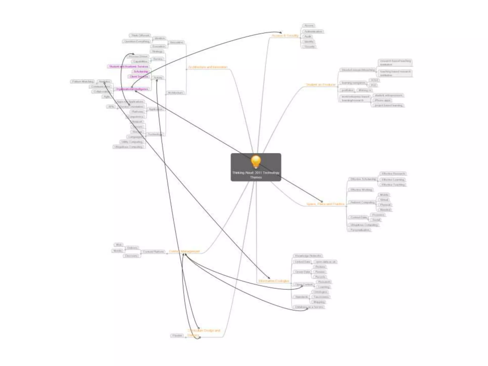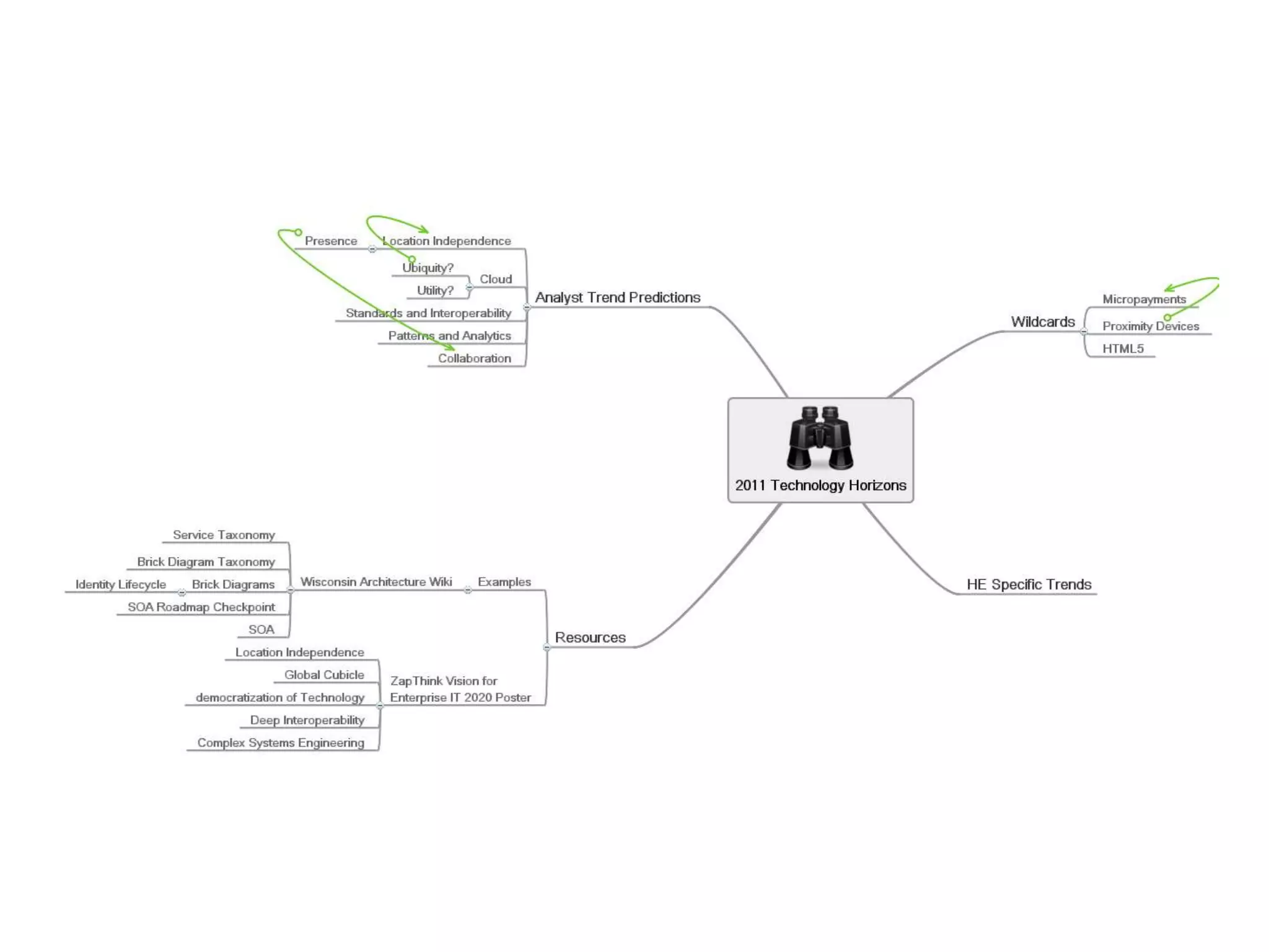 This document summarizes a technology roadmap workshop held in January 2011 at Royal Holloway, University of London. It discusses emerging technology trends over the next 1-5 years including mobile computing, electronic books, and gesture-based computing. It also outlines challenges facing universities like shrinking budgets and digital literacy. Finally, it proposes themes for a university enterprise architecture, including content management, information ecologies, and supporting the student experience through technology applications and processes.