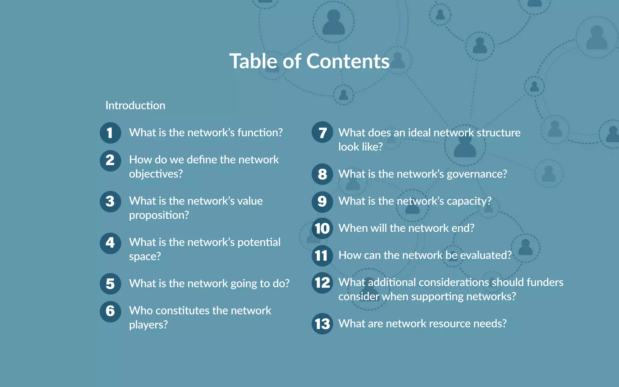 This guidebook provides program officers with strategies for establishing and enhancing networks to support initiatives, specifically through the example of the Asian Cities Climate Change Resilience Network (ACCCRN). It outlines key components of network planning, including defining objectives, value propositions, and potential activities while emphasizing the importance of strategic thinking and stakeholder engagement. The guide also discusses the evolution and impact of ACCCRN in fostering resilience to climate change by facilitating collaboration among cities and organizations.