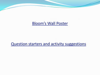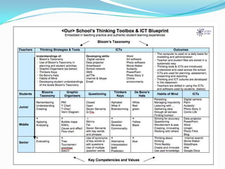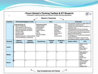 This document provides an overview of strategies and tools for developing creative and critical thinking skills. It discusses key thinking frameworks like Bloom's Taxonomy, which categorizes different thinking skills. Tools for opening the "thinking toolbox" are presented, including brainstorming, questioning techniques, and goal setting. The document also provides examples and templates for lesson planning using these thinking strategies and how to incorporate them into teaching and learning.