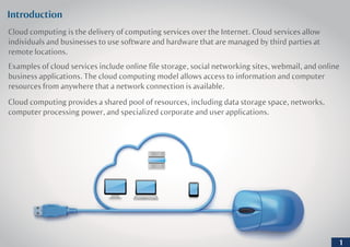 Cloud computing allows users to access software, storage, and computing resources managed by third parties remotely via the internet. There are three main cloud service models: Software as a Service (SaaS), Platform as a Service (PaaS), and Infrastructure as a Service (IaaS). Private clouds are cloud computing platforms implemented within an organization's firewall and controlled by its IT department, offering security and control over data while providing cloud benefits. Building a private cloud requires researching needs, acquiring infrastructure, training staff, and testing in a non-critical environment before full deployment. Managed private clouds are single-tenant private clouds hosted and managed by a third party.