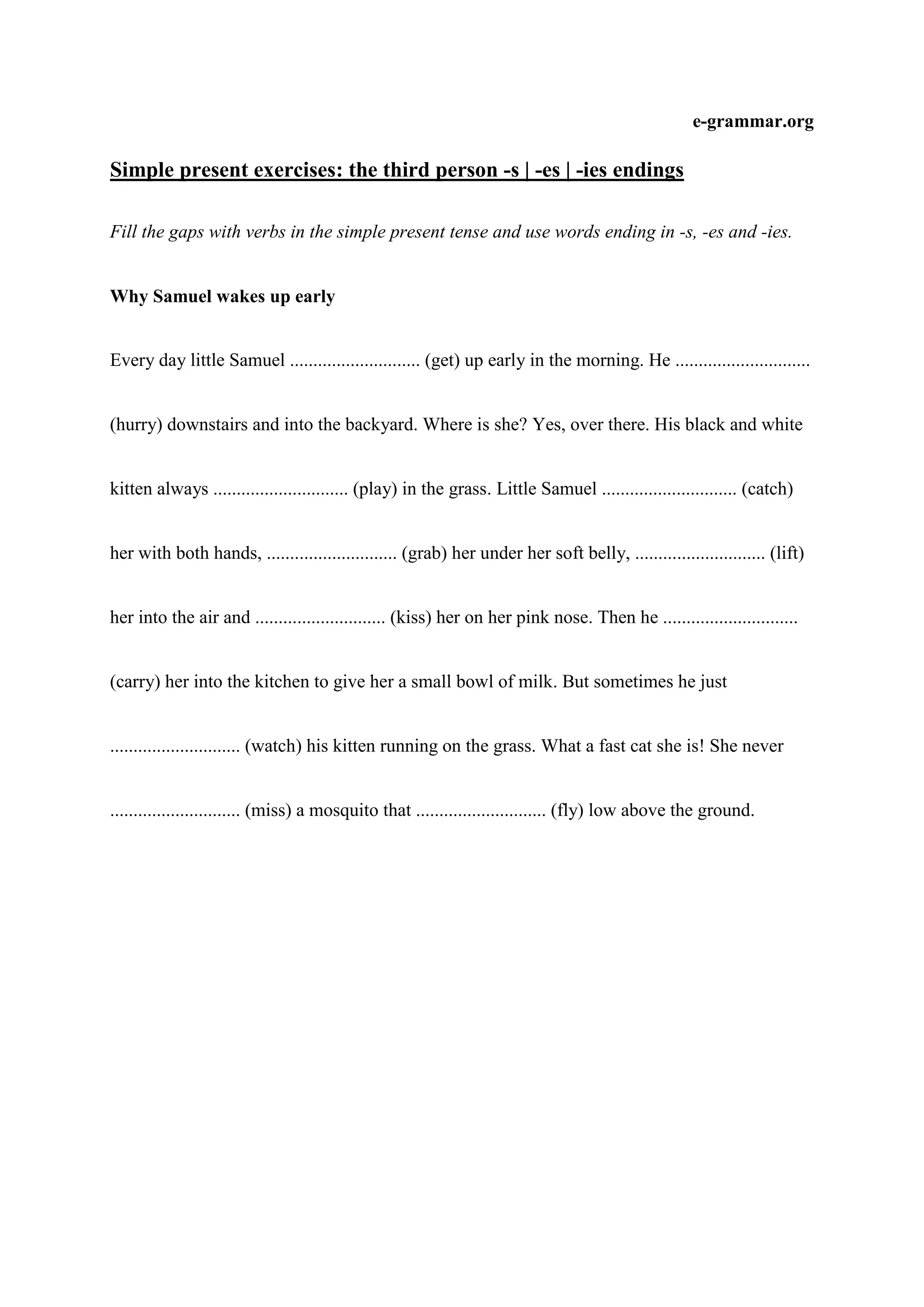 Samuel wakes up early every morning and hurries downstairs to find his black and white kitten playing in the backyard grass. He catches her with both hands, grabs her under her soft belly, lifts her into the air and kisses her on her pink nose. Then he carries her into the kitchen to give her a small bowl of milk.