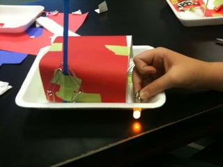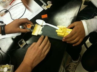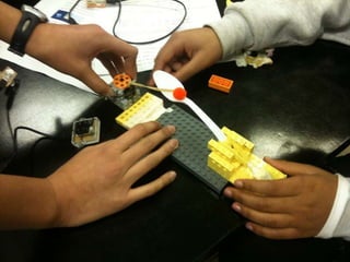 The document discusses giving cameras to young students to take pictures and describe what they see. It also discusses after school invention projects with older elementary school students, and building electronic toys with middle schoolers. The overall approach is described as combining hands-on activities with creative freedom to encourage playful discovery. The document seeks potential partnerships or ideas to discuss further.
