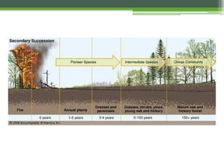 The document discusses ecosystems, defining them as natural units of living and non-living components interacting in a specific environment. It outlines the structure, functions, and classification of ecosystems, including natural and artificial types, and details various ecological processes such as energy flow, food chains, and ecological succession. Additionally, it addresses the importance of ecological pyramids and biomagnification, highlighting how energy and nutrients circulate within ecosystems.
