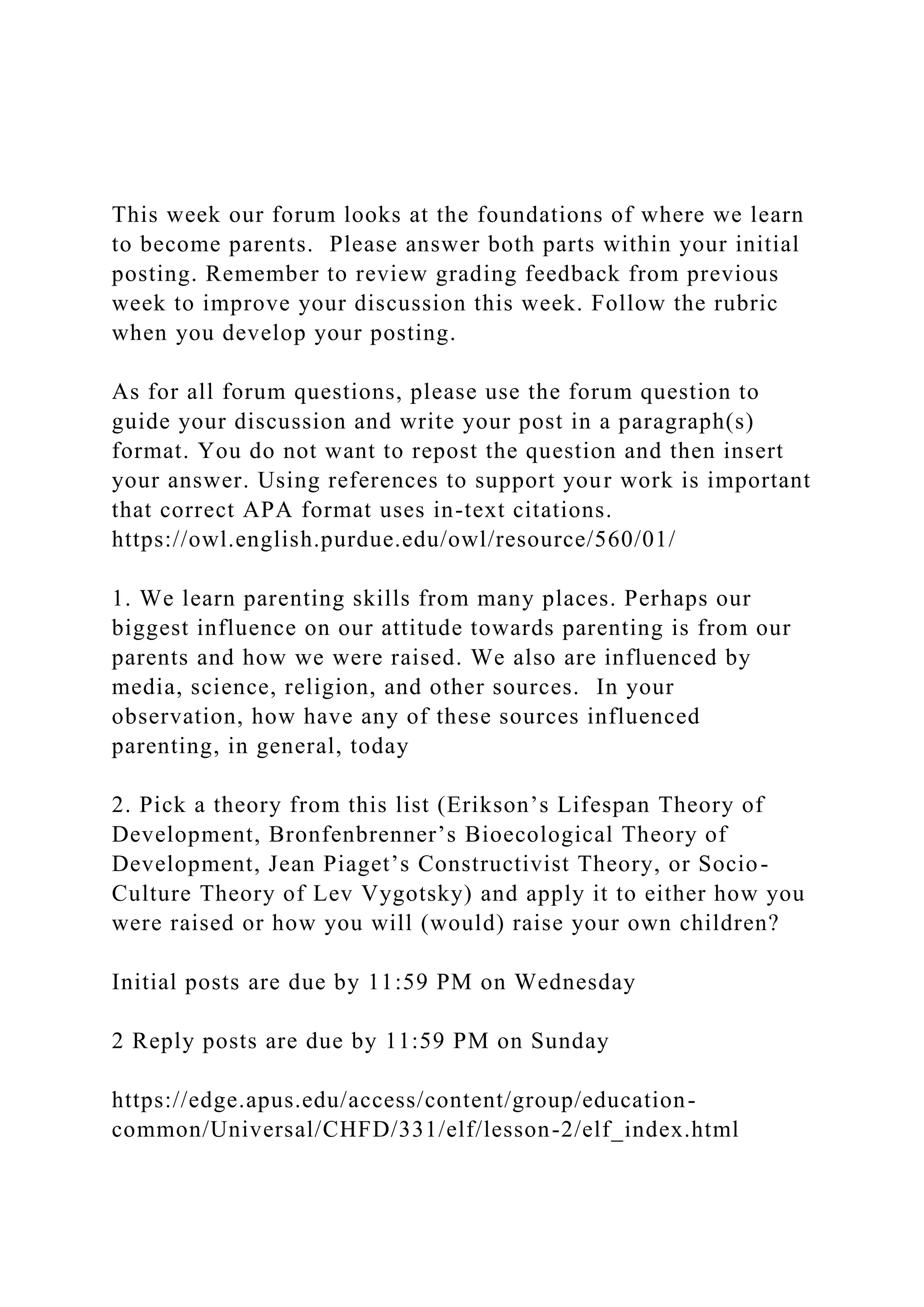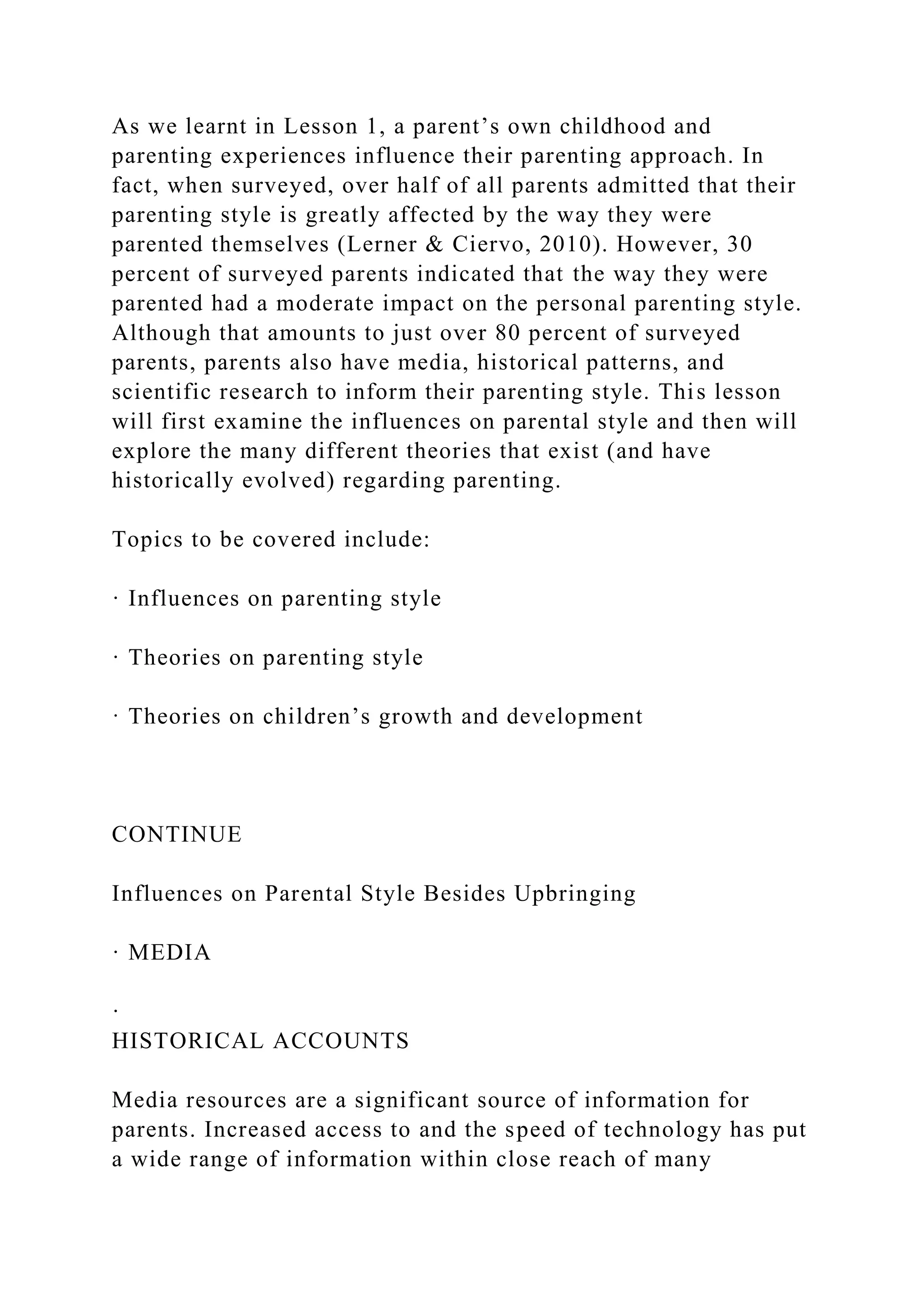 The document outlines the various influences on parenting, including personal upbringing, media, and scientific advancements, while emphasizing the importance of understanding and applying different parenting theories. It discusses significant theories such as Erikson's psychosocial development, Bronfenbrenner's bioecological theory, and Piaget's constructivist theory, highlighting their relevance in shaping parenting styles and child development. Furthermore, it indicates the need for parents to be adaptable and informed in their approaches to better support their children's growth.