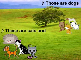This children's song introduces common farm and pet animals such as cats, dogs, ducks, cows, mice, birds, chicks, and sheep. It also distinguishes between a house and barn as well as girls and boys.