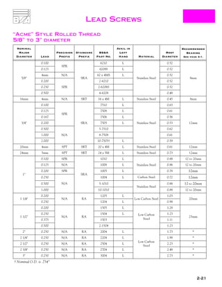 This document provides information on lead screws and supernuts from Ball Screws and Actuators. It discusses the features, advantages, design considerations and material properties of lead screws. Key points include that lead screws offer cost savings compared to ball screws, come in a variety of leads and diameters, and use stainless steel and internally lubricated acetal plastic for non-corrosive operation. Standard and precision grades are available with lead accuracies of 0.010 in/ft and 0.003 in/ft respectively. Load and temperature limits vary based on the specific assembly. Custom options are available to meet unique specifications.