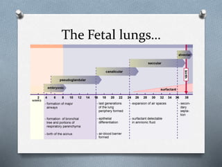 1. The 5 stages of lung development: embryonic, pseudoglandular, canalicular, saccular, and alveolar.
