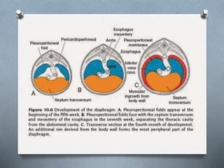 3. Details on diaphragmatic development and abnormalities like CDH (congenital diaphragmatic hernia).