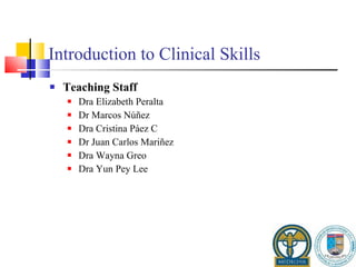 This document provides an introduction to examining the chest, lungs, heart, and cardiovascular system during a clinical skills examination. It covers evaluating the chest externally including landmarks, muscles, and surface anatomy. Techniques for examining the lungs are described, including inspection, palpation, percussion, and auscultation. The heart and cardiovascular system are also discussed, such as heart sounds, murmurs, arterial pulses, blood pressure, and jugular vein pressure. The document provides guidance on recording clinical findings.