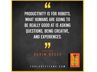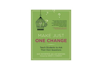 This document discusses questioning and how to craft better questions. It provides guidance on understanding goals of questioning, different types of questions, and how to structure a Question Formulation Technique (QFT) to help students learn to ask their own questions. The QFT is a rigorous process that helps students produce questions, improve questions, prioritize questions, and develop next steps. Implementing the QFT shifts practice by having students, rather than teachers, be the primary askers of questions. This change in role is meant to lead to cognitive, affective, and behavioral changes in students as they learn to think, feel, and act differently through self-questioning.
